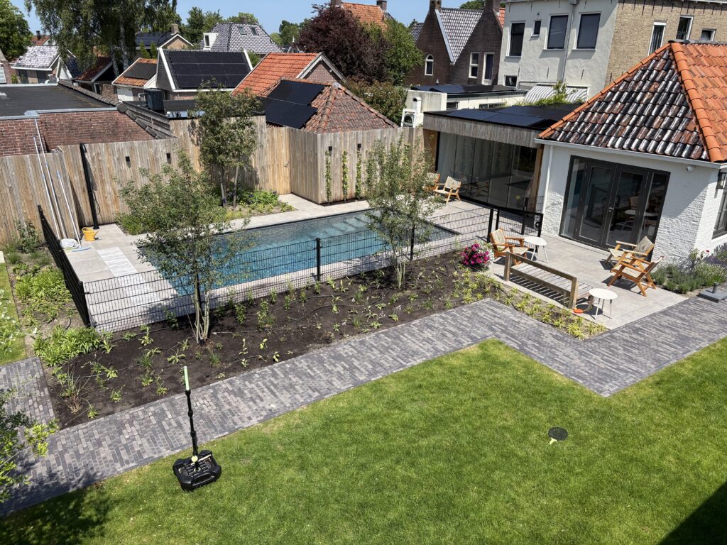 In het Friese Kollum mochten we deze prachtige opdracht voor een complete tuinaanleg uitvoeren. De wens van de bewoners was duidelijk: een moderne en onderhoudsvriendelijke tuin creëren waar comfort en groen naadloos samenkomen. Het resultaat is een evenwichtig ontwerp met strakke lijnen en een warme, natuurlijke uitstraling.