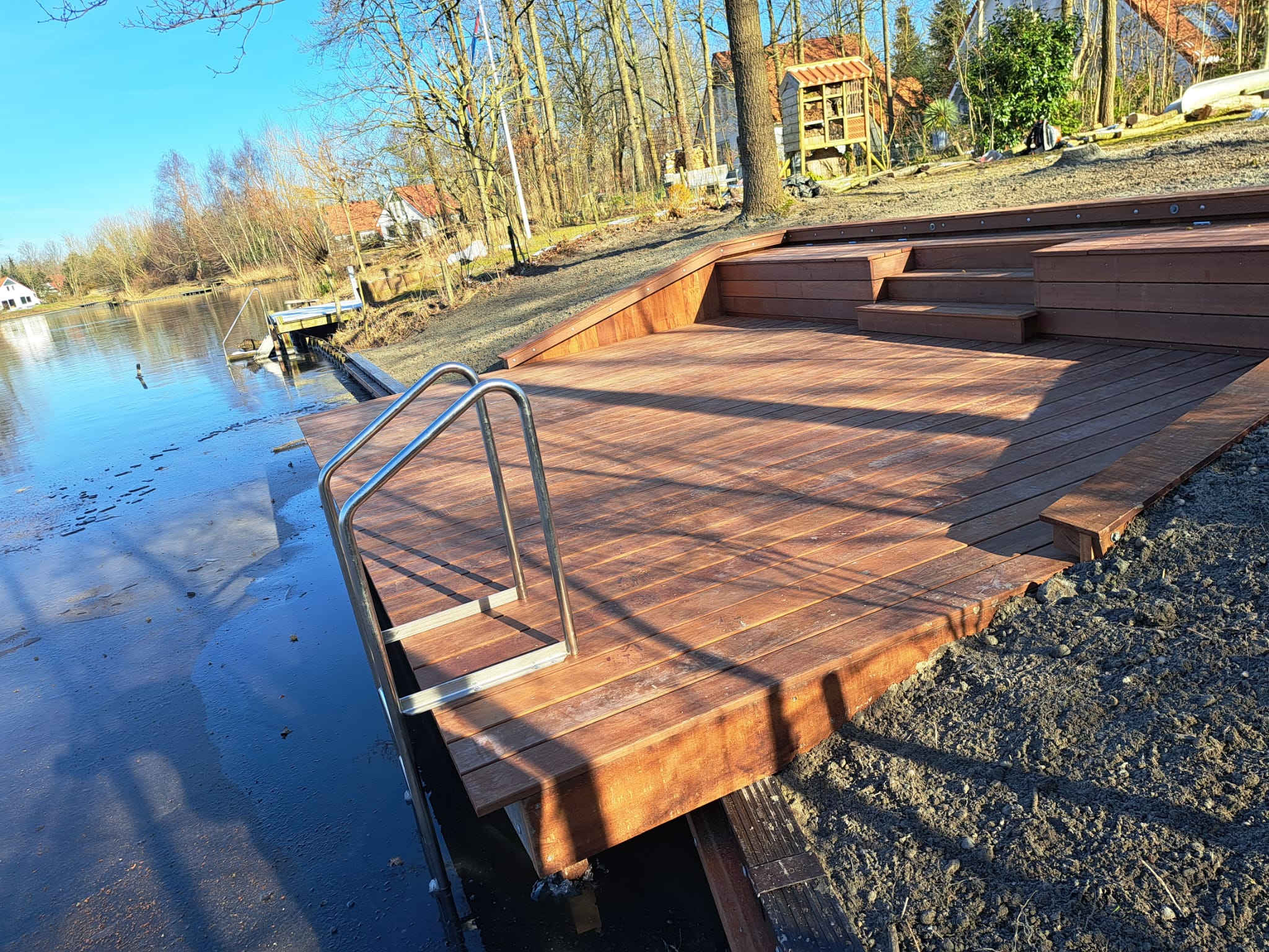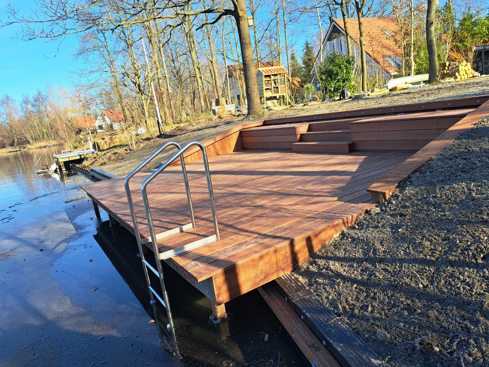 Ultiem vakantiegevoel Het resultaat is een indrukwekkend terras aan het water dat uitnodigt tot ontspanning. De steiger is voorzien van: