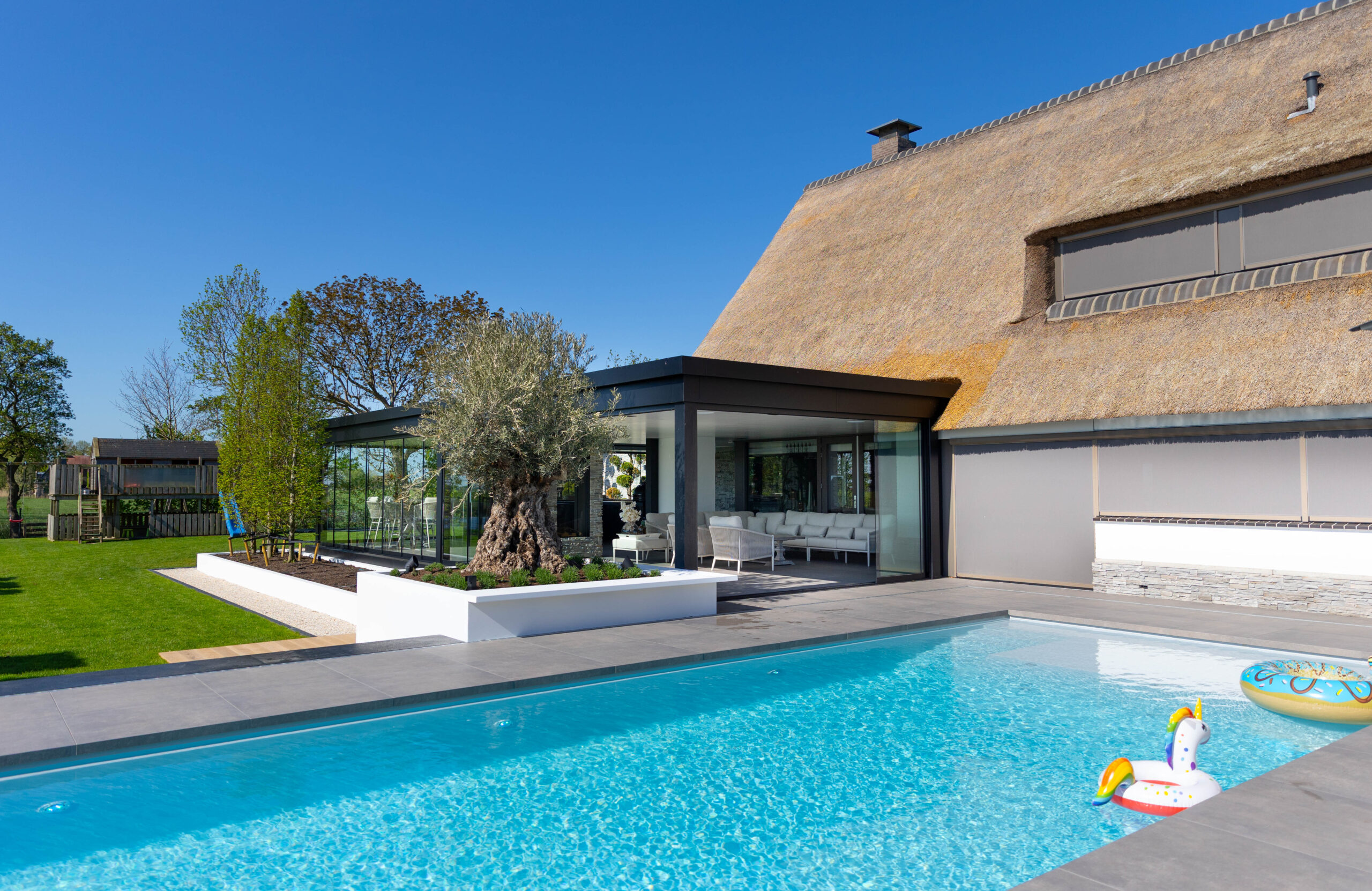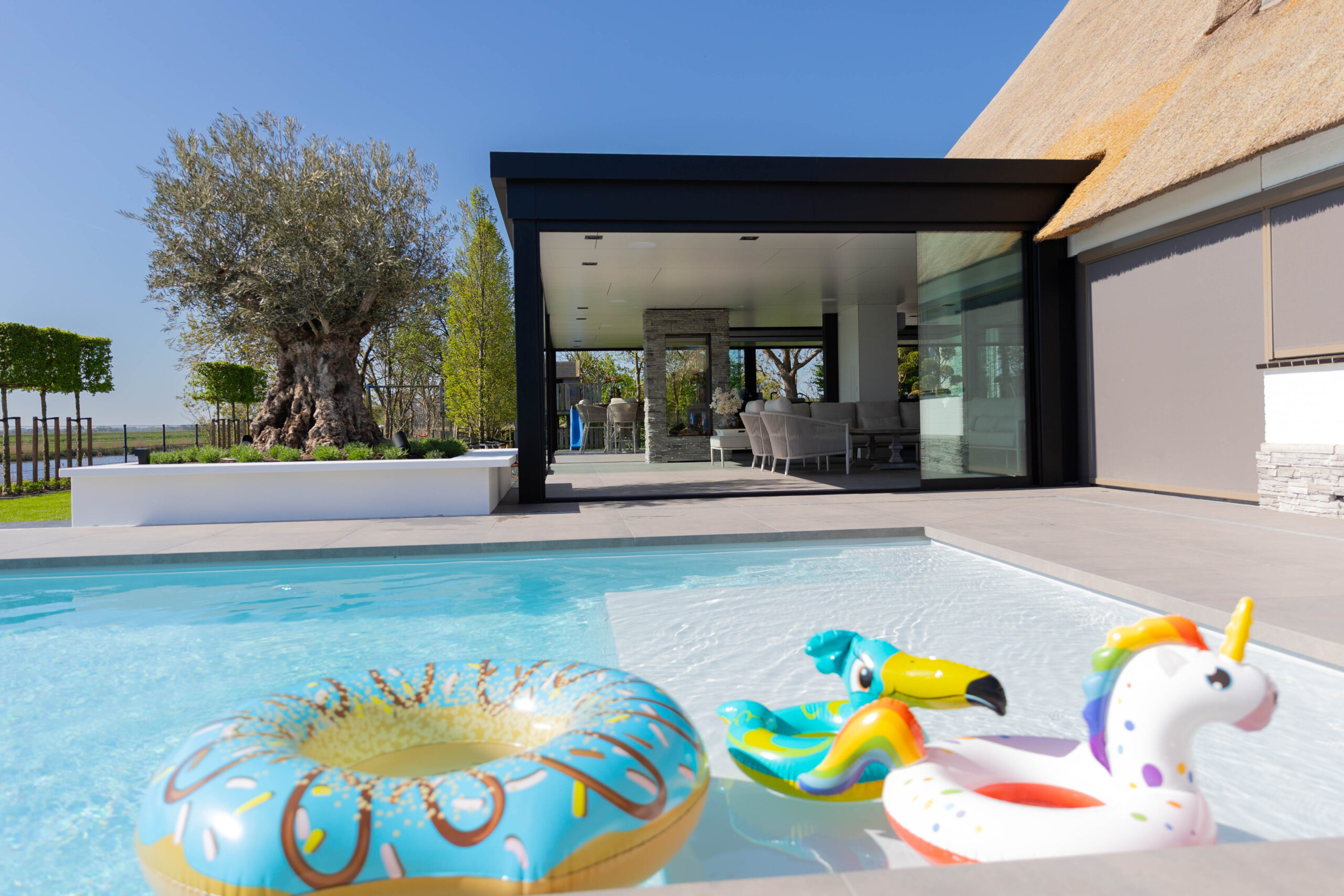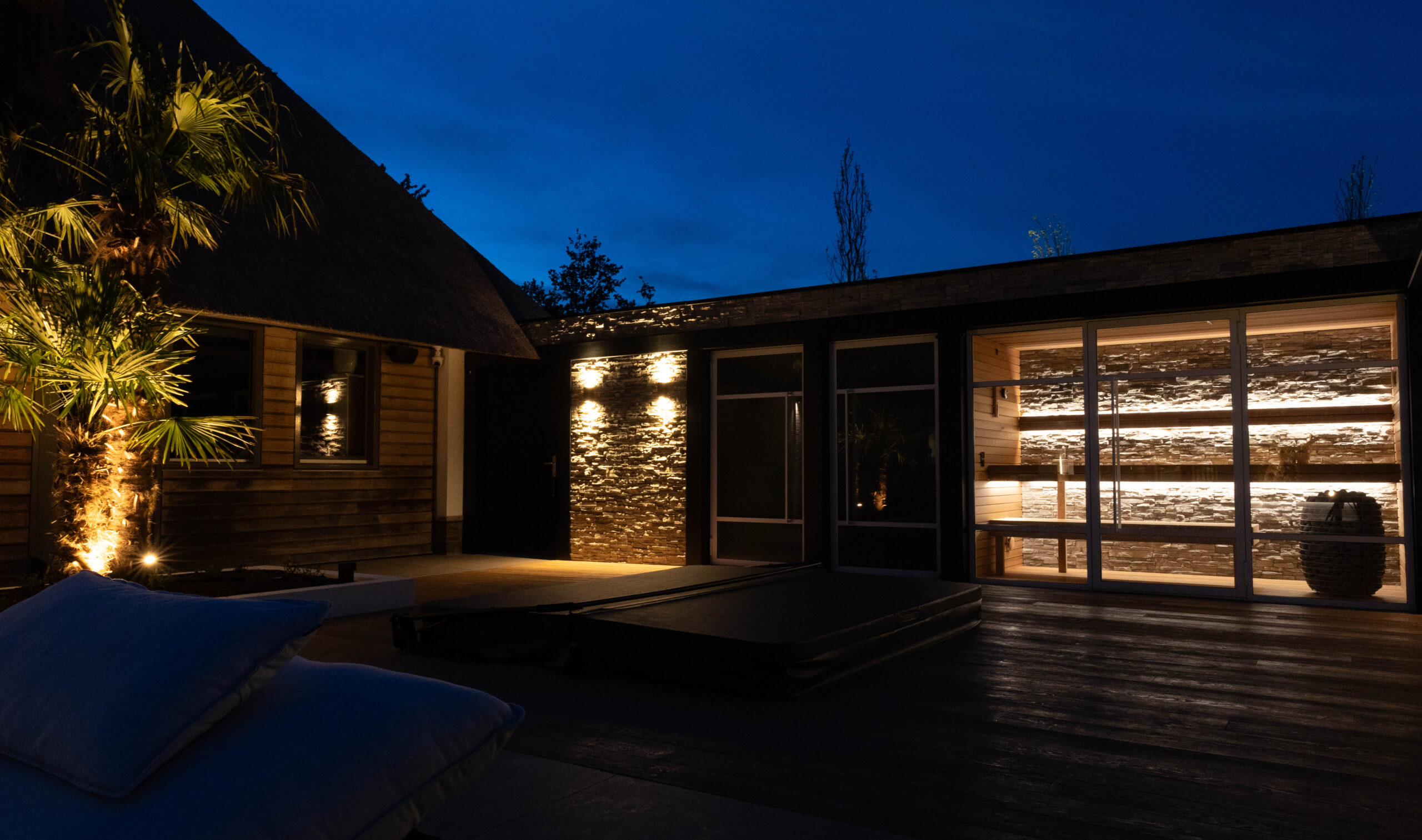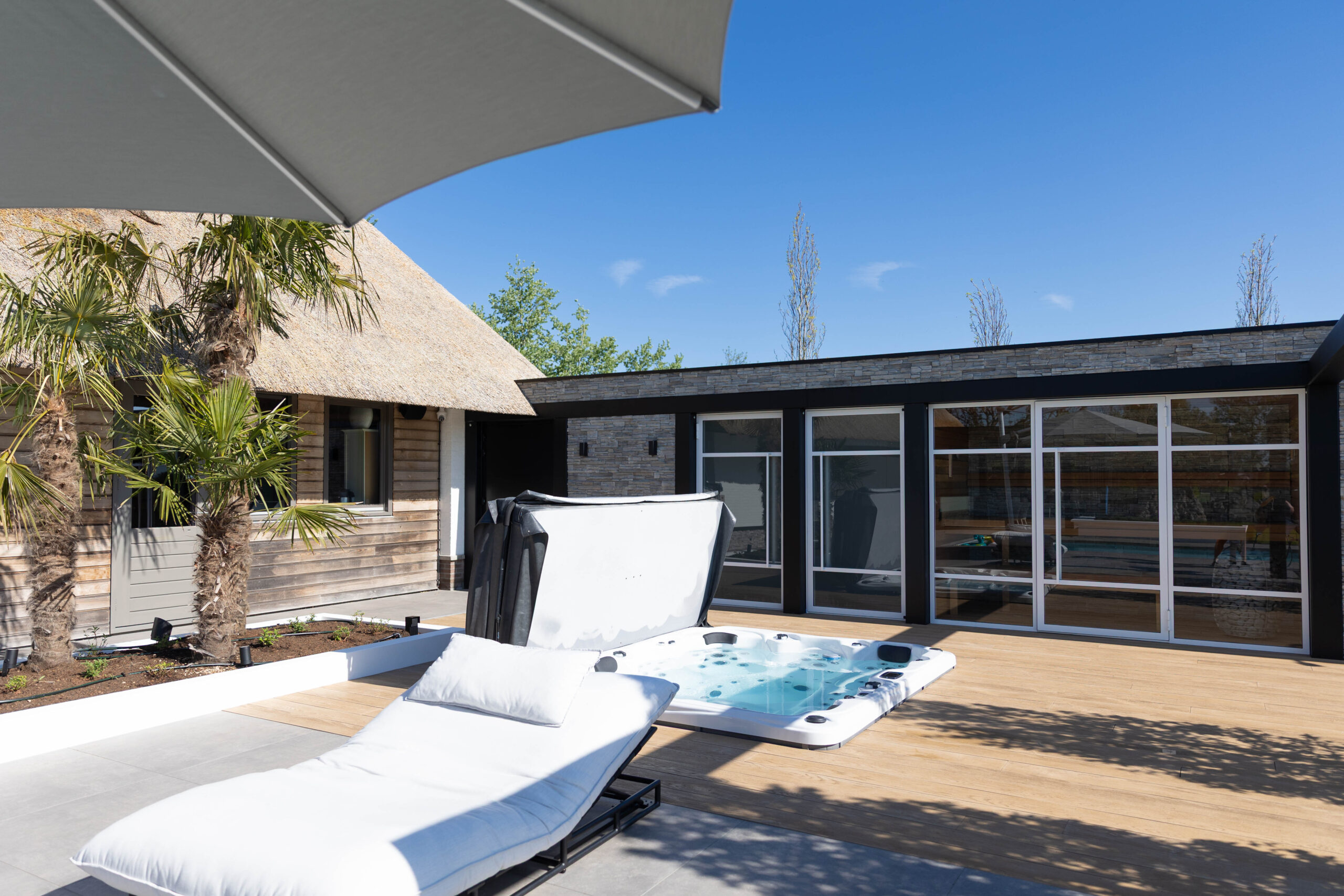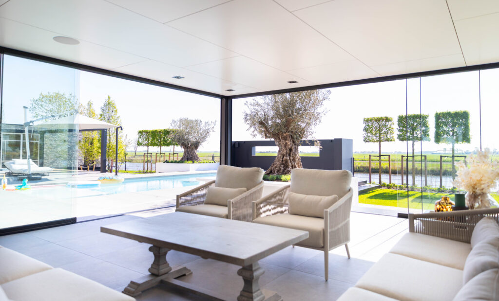 Villatuin met buitensalon, zwembad en wellness