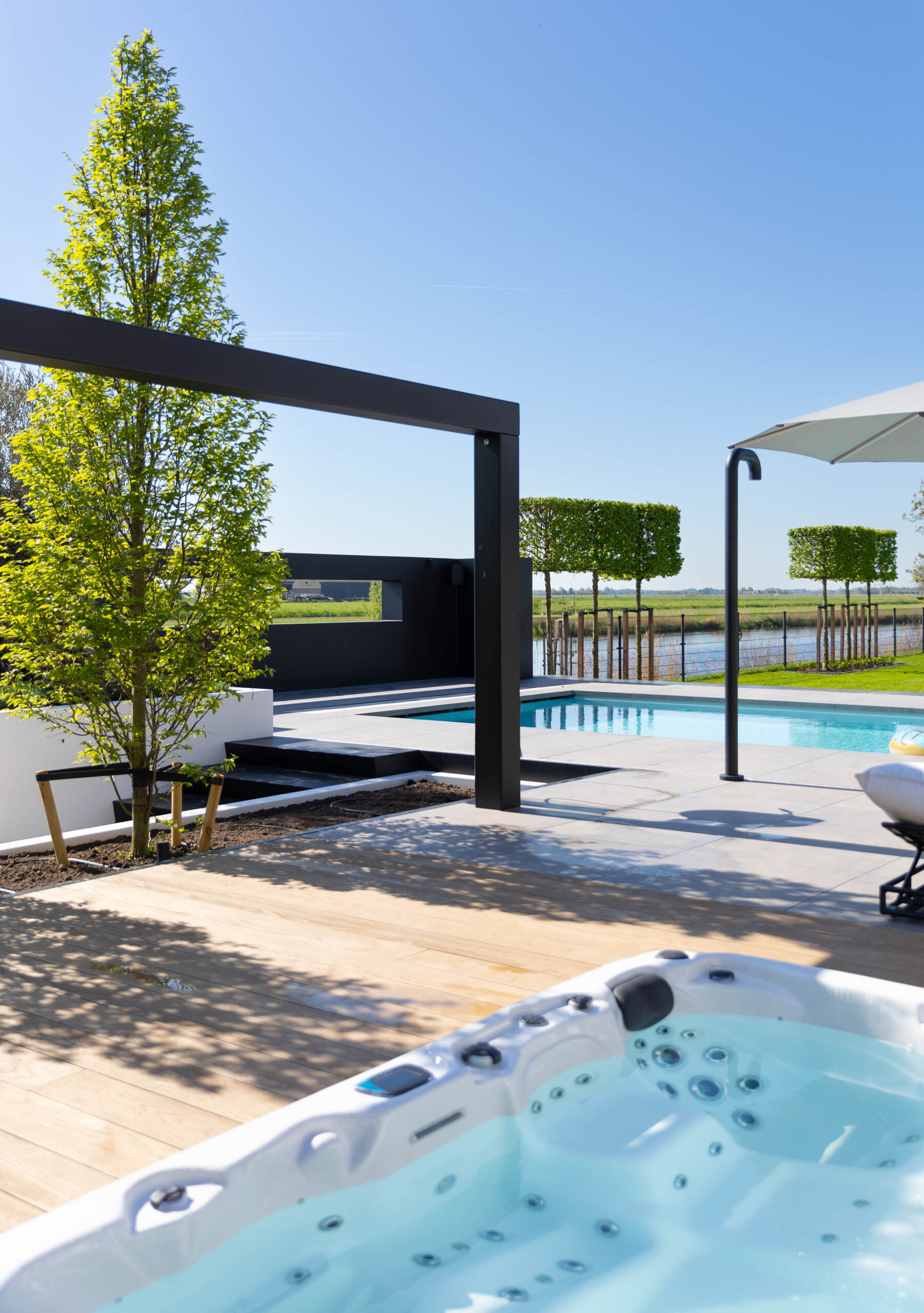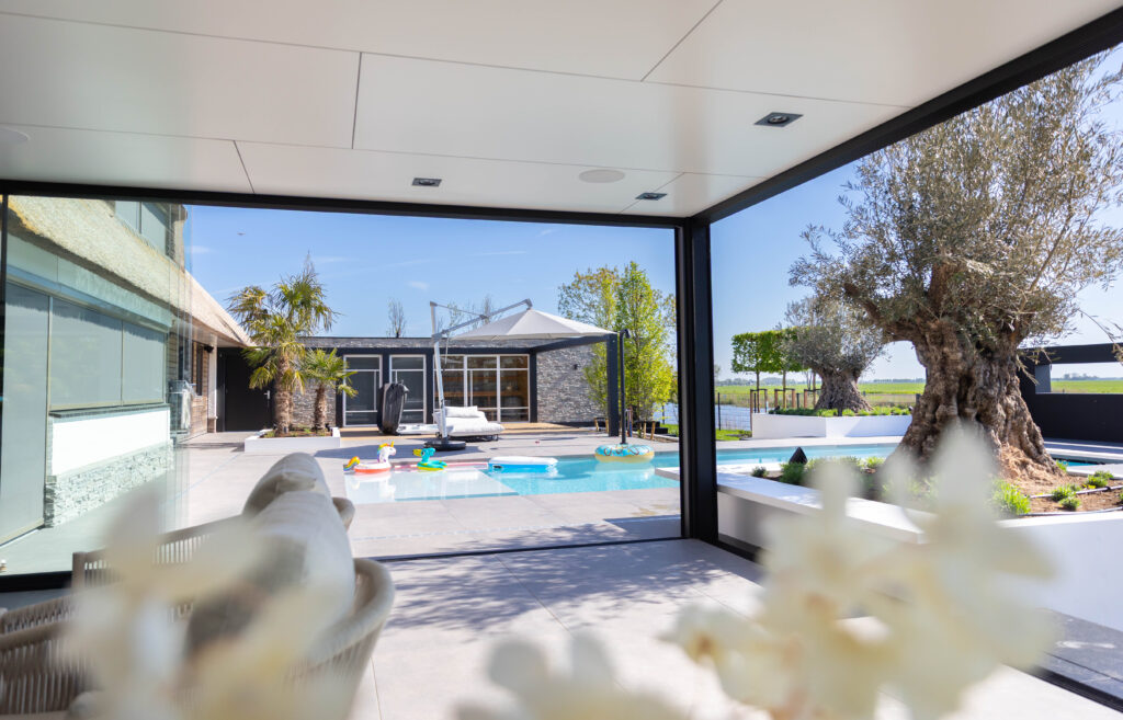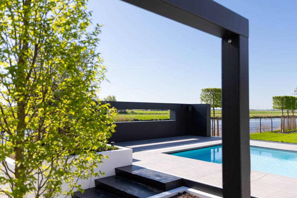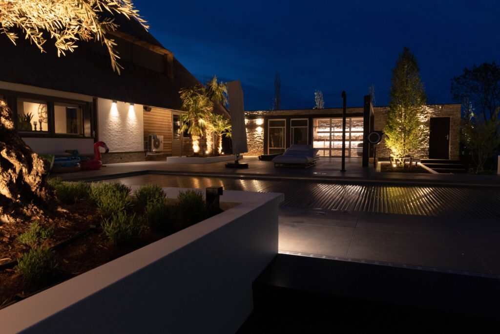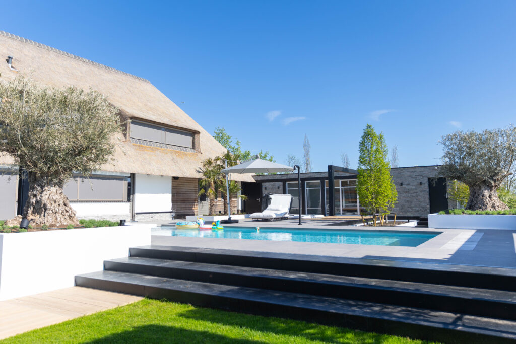 In het Friese Bartlehiem mochten we een prachtige opdracht uitvoeren. De wens van de bewoners was helder: een villatuin creëren waar je het hele jaar door het ultieme vakantiegevoel ervaart. Het resultaat is een complete metamorfose waarbij we luxe, comfort en groen naadloos met elkaar hebben verbonden.